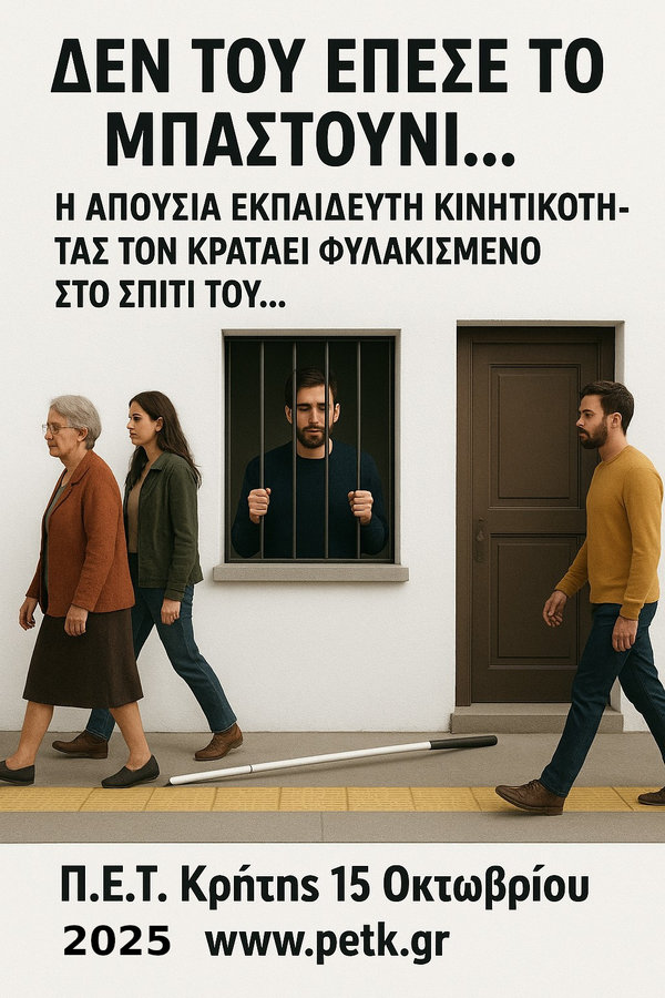 Περιφερειακή Ένωση Κρήτης του Πανελληνίου Συνδέσμου Τυφλών. Τηλ: 2810 211511 e-mail: petkritis@yahoo.gr
