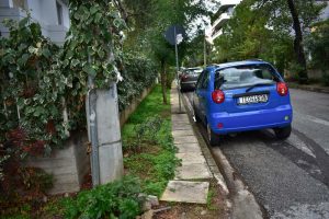2. Παράνομη φύτευση: Κατασκευάζονται «πεζοδρόμια» τα οποία φυτεύονται παράνομα εντός της ελεύθερης ζώνης όδευσης πεζών.